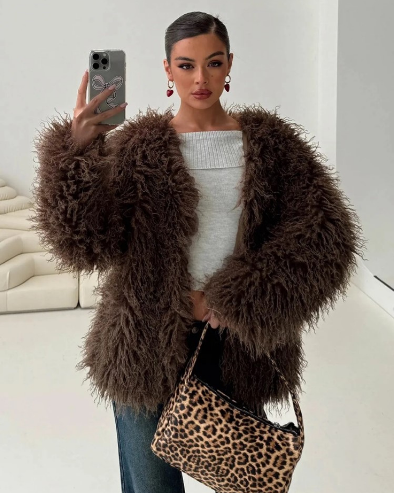 Nora™ – Soft Teddy Jacket with Button Closure and Hood