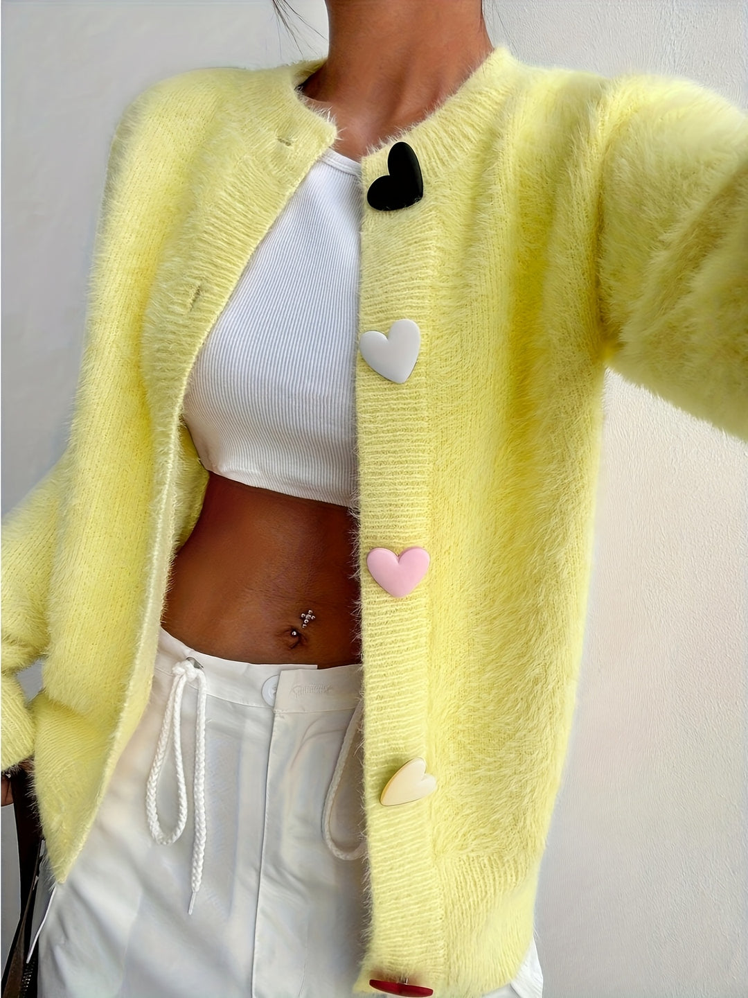 ELSIE | Women's Colorful Elegant Plush Cardigan with Heart Buttons